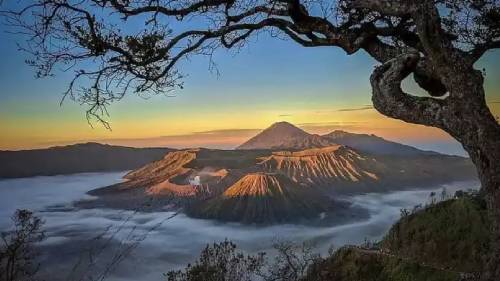 Saksikan matahari terbit magis di atas lautan pasir vulkanik.